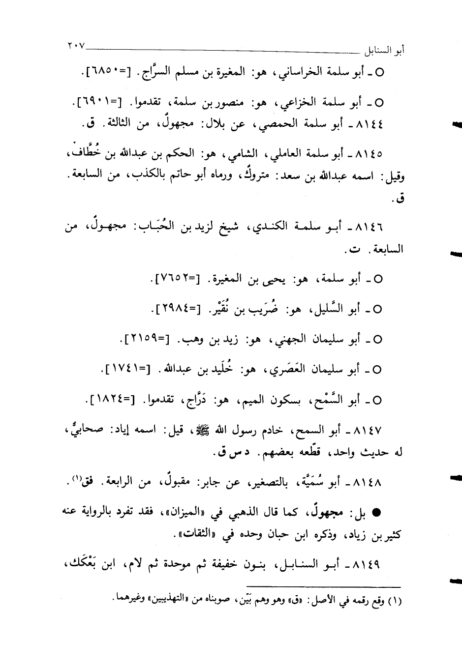 8144 - أبو سلمة الحمصي، عن بلال: مجهولٌ، من الثالثة. ق.