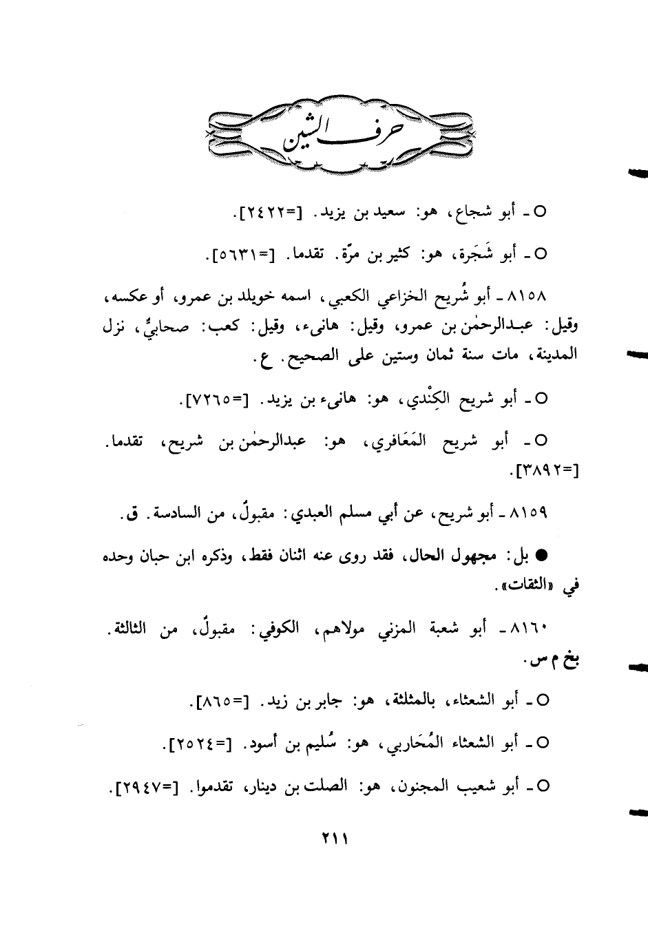 8160 - أبو شعبة المزني مولاهم، الكوفي: مقبول، من الثالثة. بخ م س.