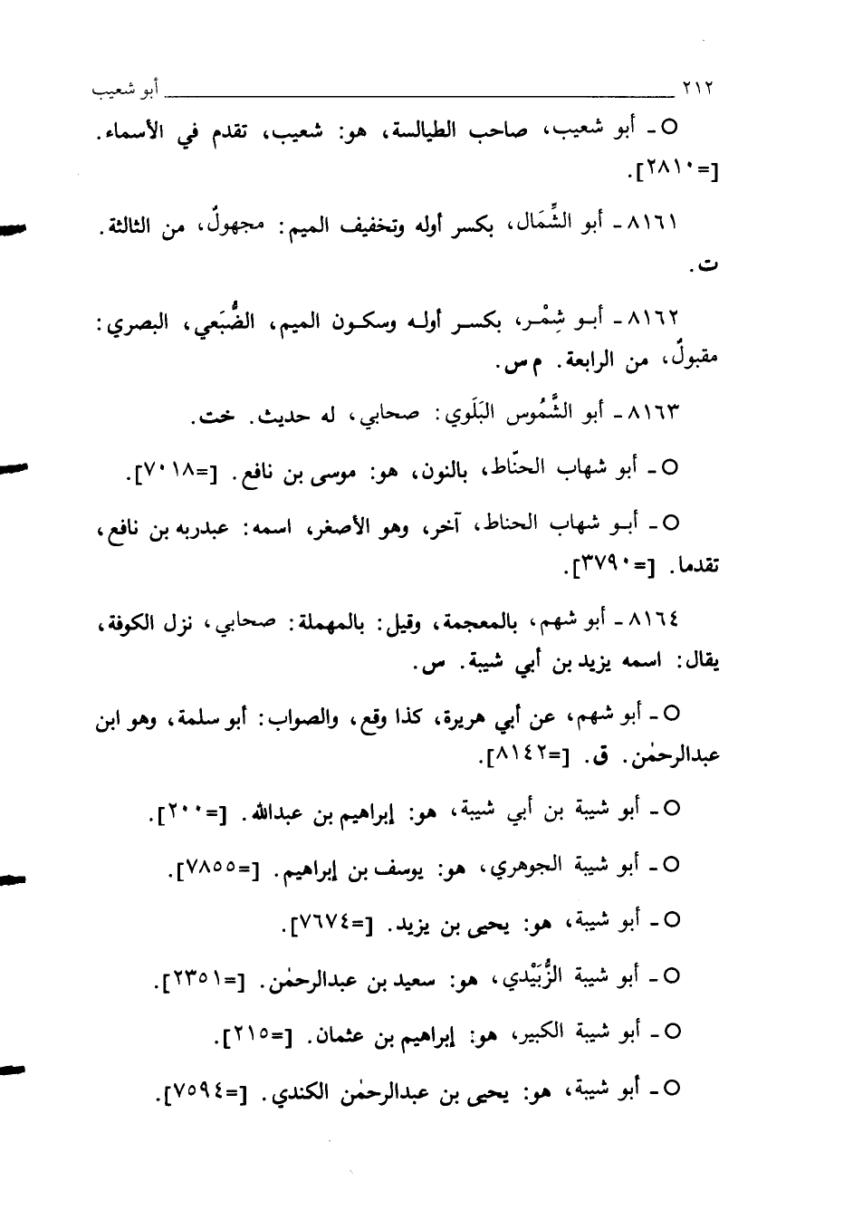 8164 - أبو شهم، بالمعجمة، وقيل: بالمهملة: صحابي، نزل الكوفة، يقال: اسمه يزيد بن أبي شيبة. س.