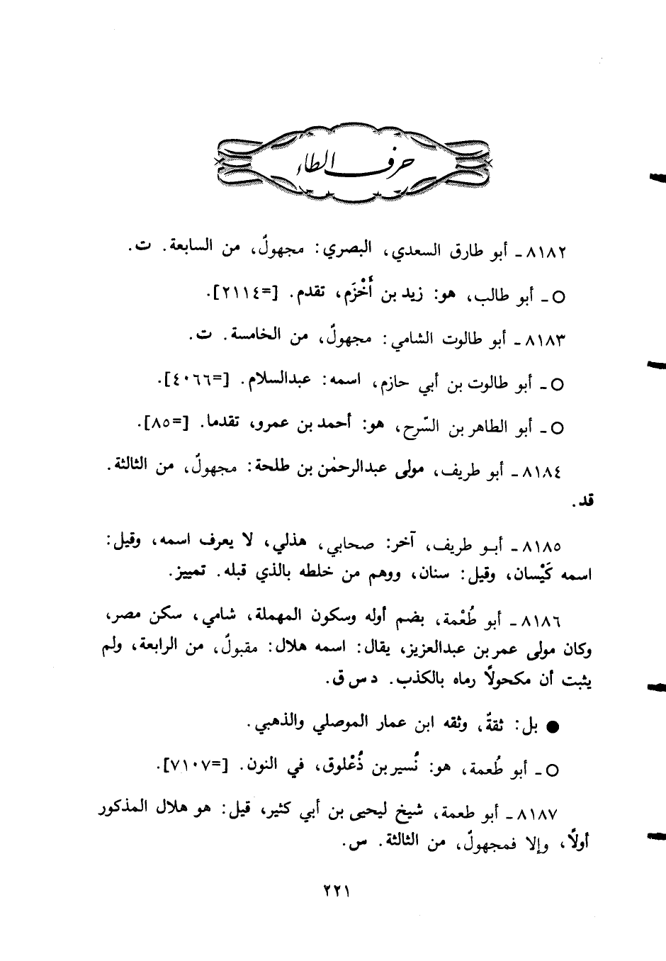 8184 - أبو طريف، مولى عبد الرحمن بن طلحة: مجهول، من الثالثة. قد.