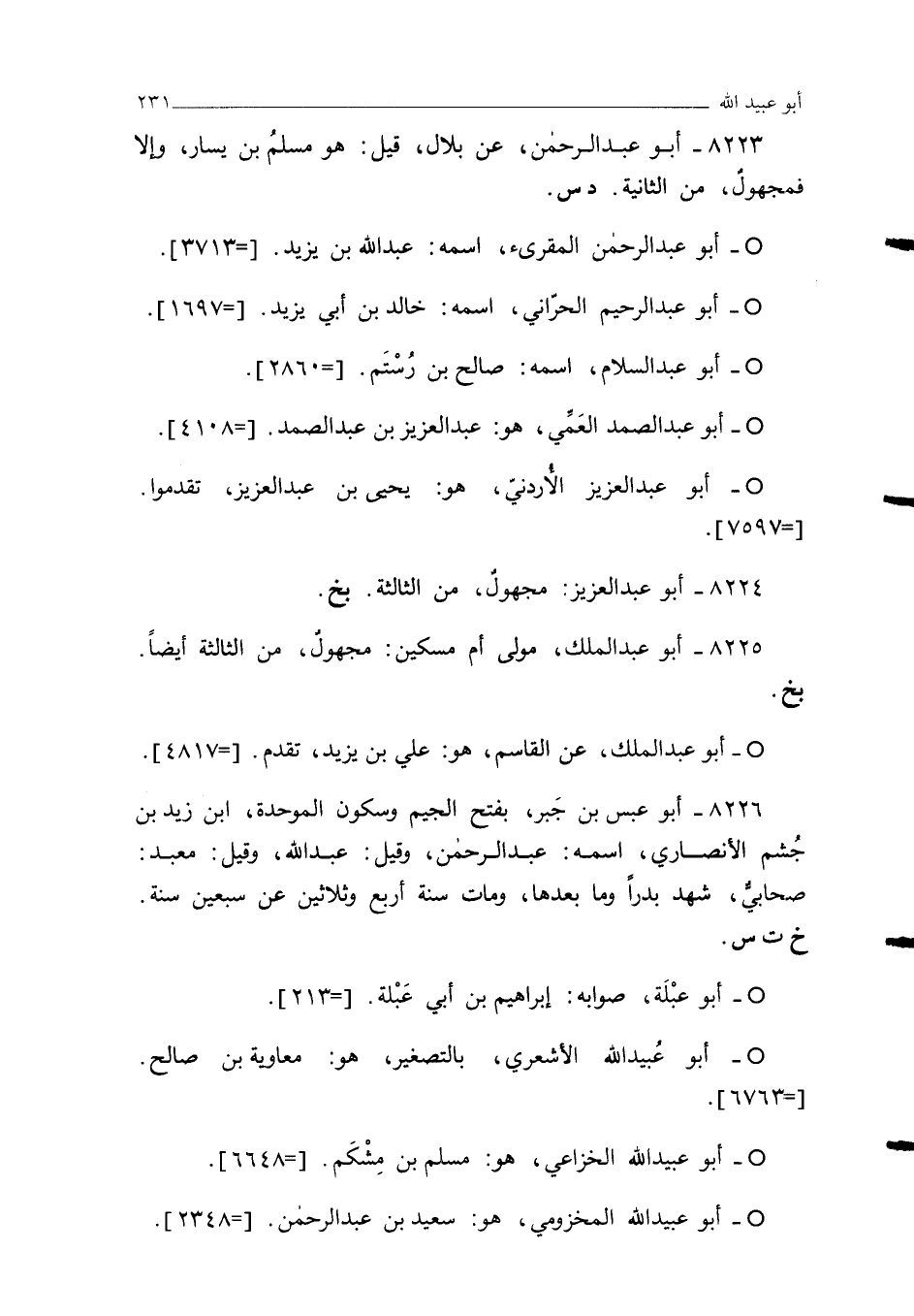 8225 - أبو عبد الملك، مولى أم مسكين: مجهولٌ، من الثالثة أيضًا. بخ.
