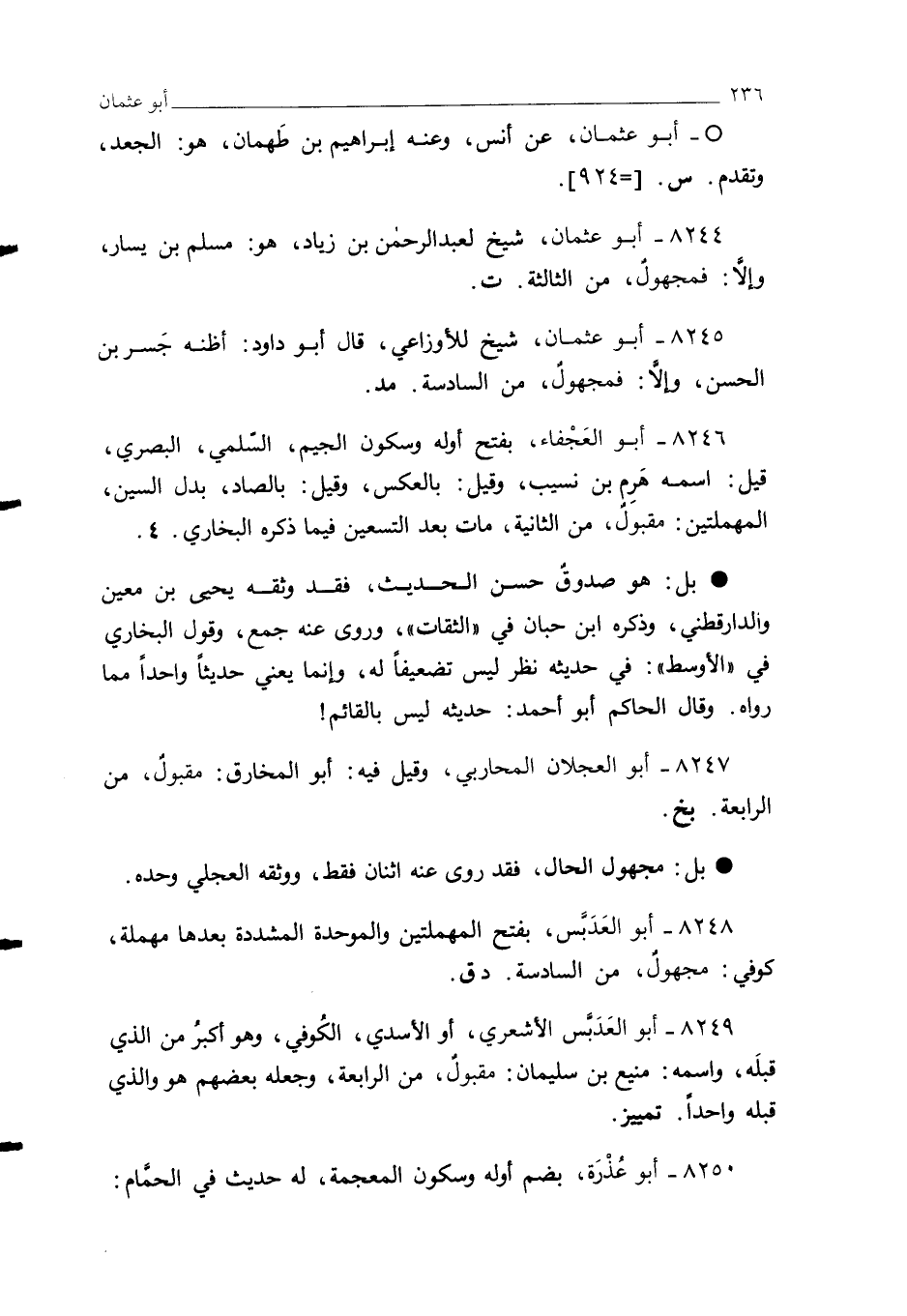 8244 - أبو عثمان، شيخ لعبد الرحمن بن زياد، هو: مسلم بن يسار، وإلَّا: فمجهولٌ، من الثالثة. ت.