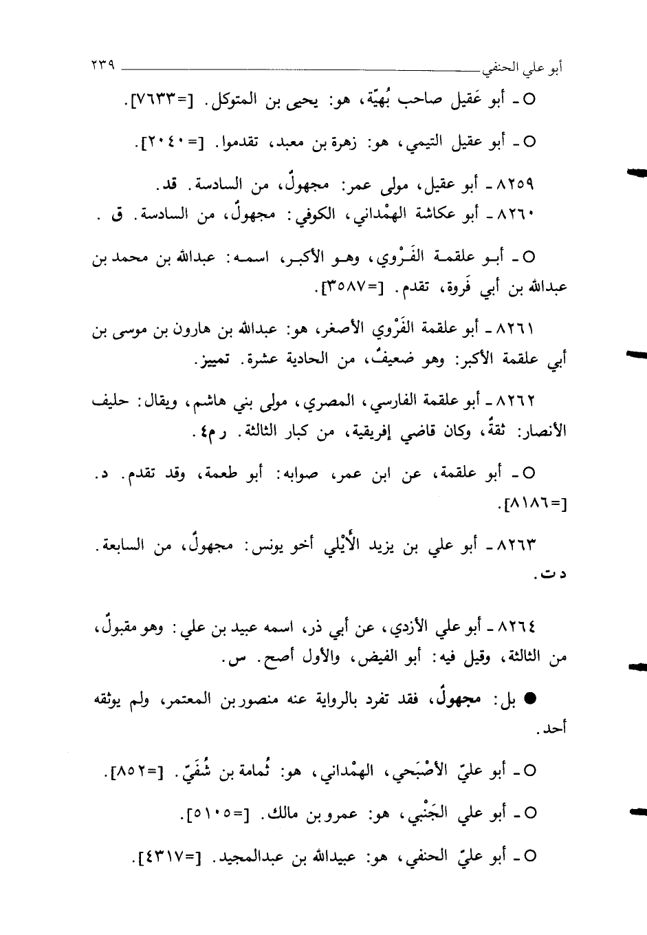 ° - أبو عليّ الأصْبَحيُّ، الهمْدانيُّ، هو: ثُمامة بن شُفَيّ. [= 852].