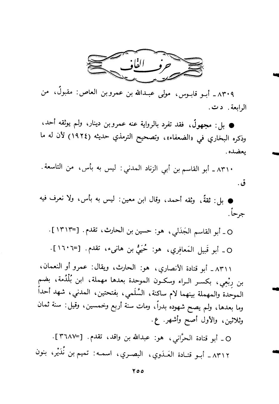 8309 - أبو قابوس، مولى عبد الله بن عمرو بن العاص: مقبولٌ، من الرابعة. د ت.