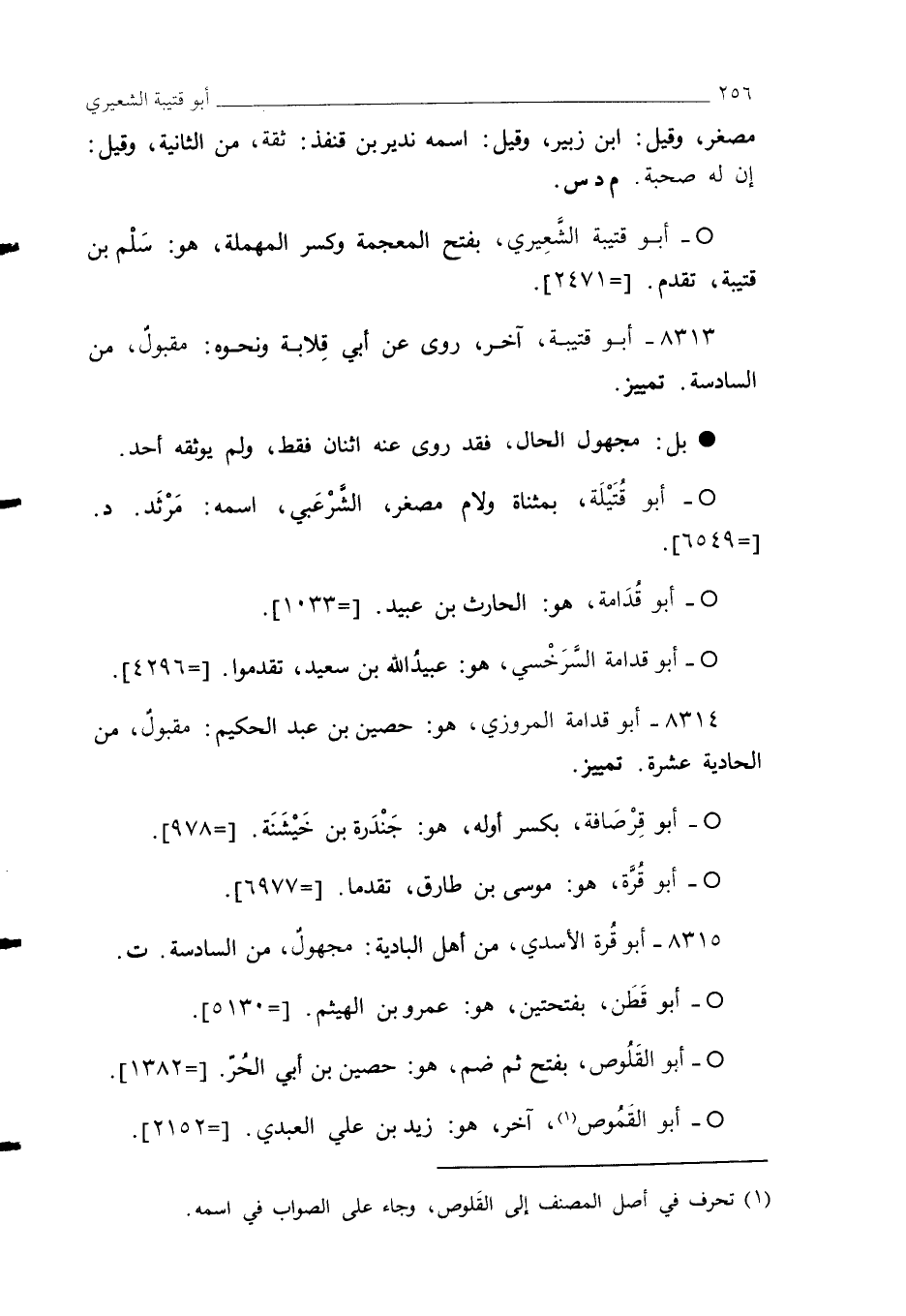 8313 - أبو قتيبة، آخر، روى عن أبي قِلابة ونحوه: مقبولُ، من السادسة. تمييز.