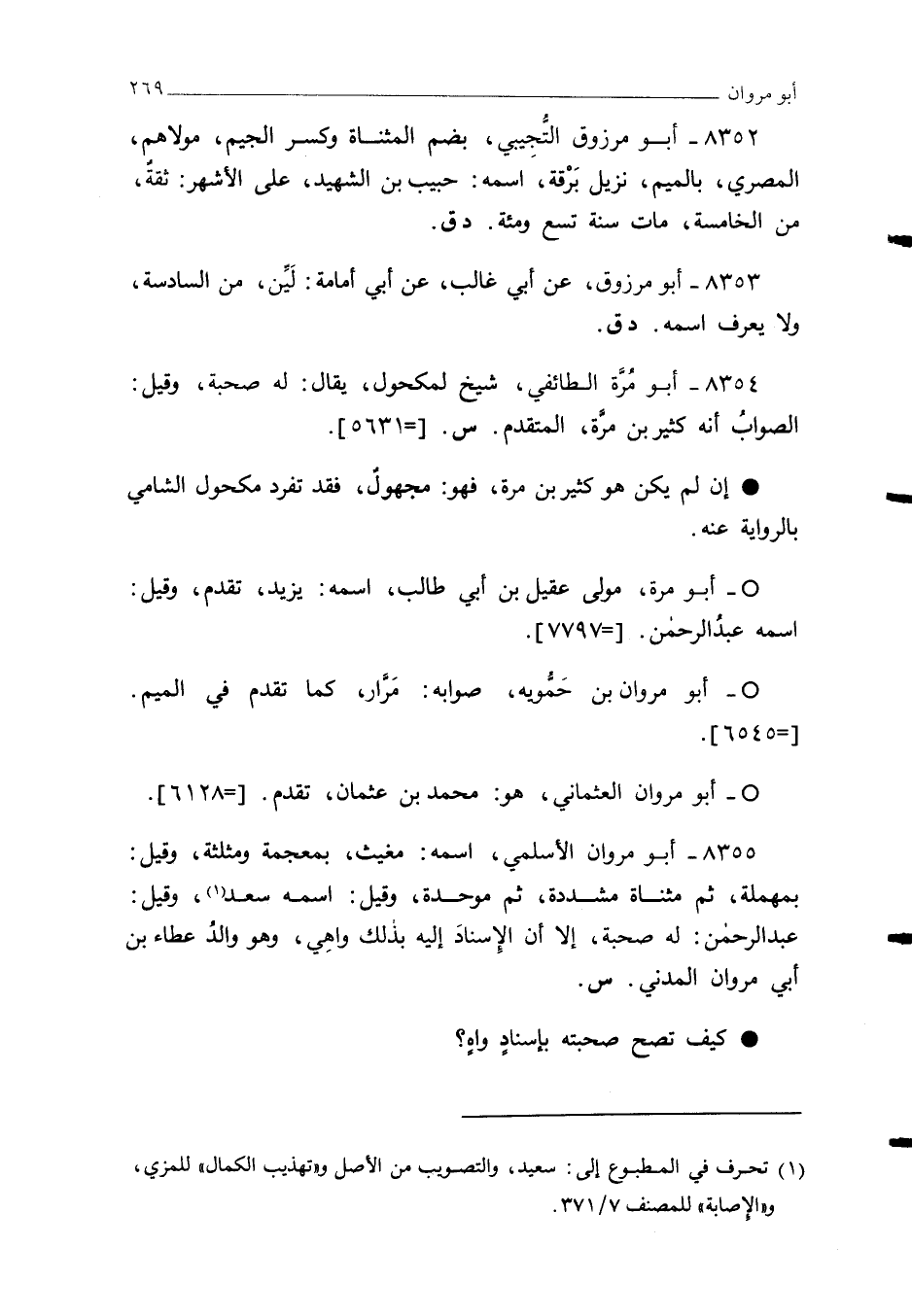 ° - أبو مروان بن حَمُّويه، صوابه: مَرَّار، كما تقدم في الميم. [=6545].