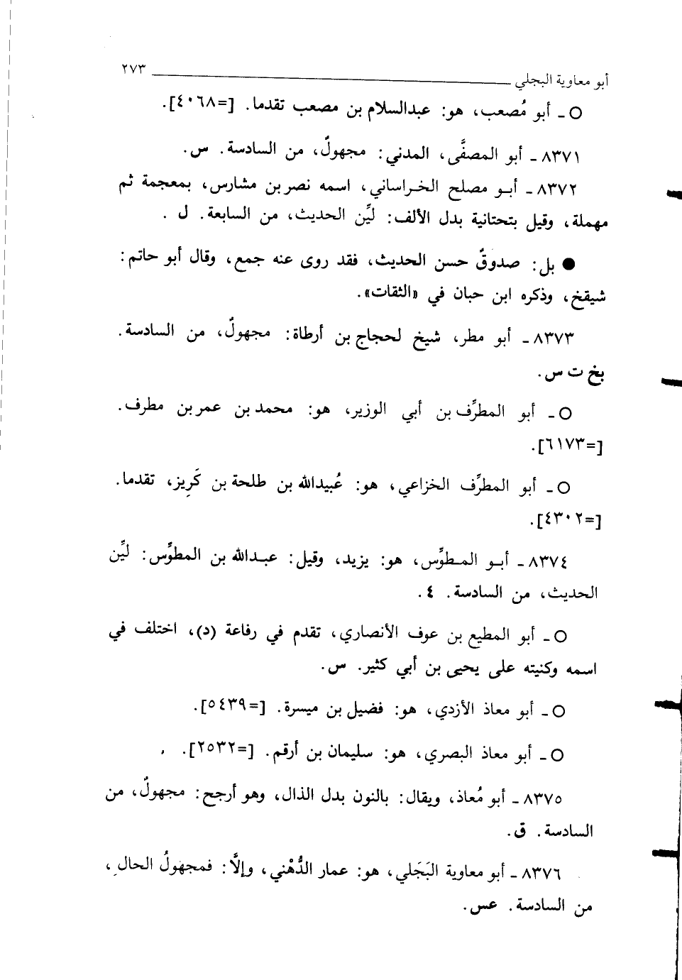 8375 - أبو مُعاذ، ويقال: بالنون بدل الذال، وهو أرجح: مجهولٌ، من السادسة. ق.