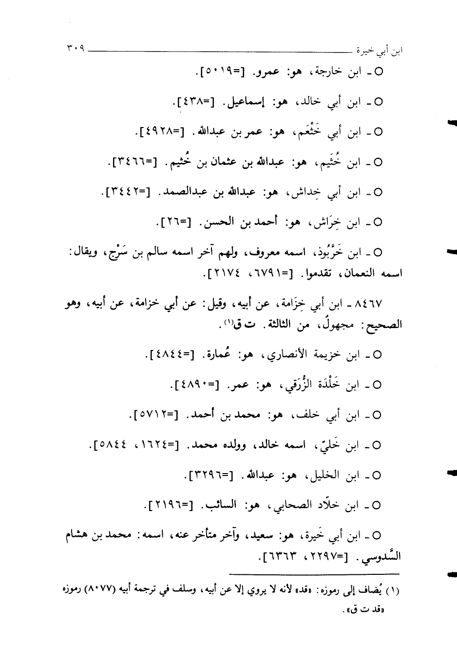 ° - ابن أبي خَيرة، هو: سعيد، وآخر متأخر عنه، اسمه: محمد بن هشام السَّدوسي. [=2297، 6363].