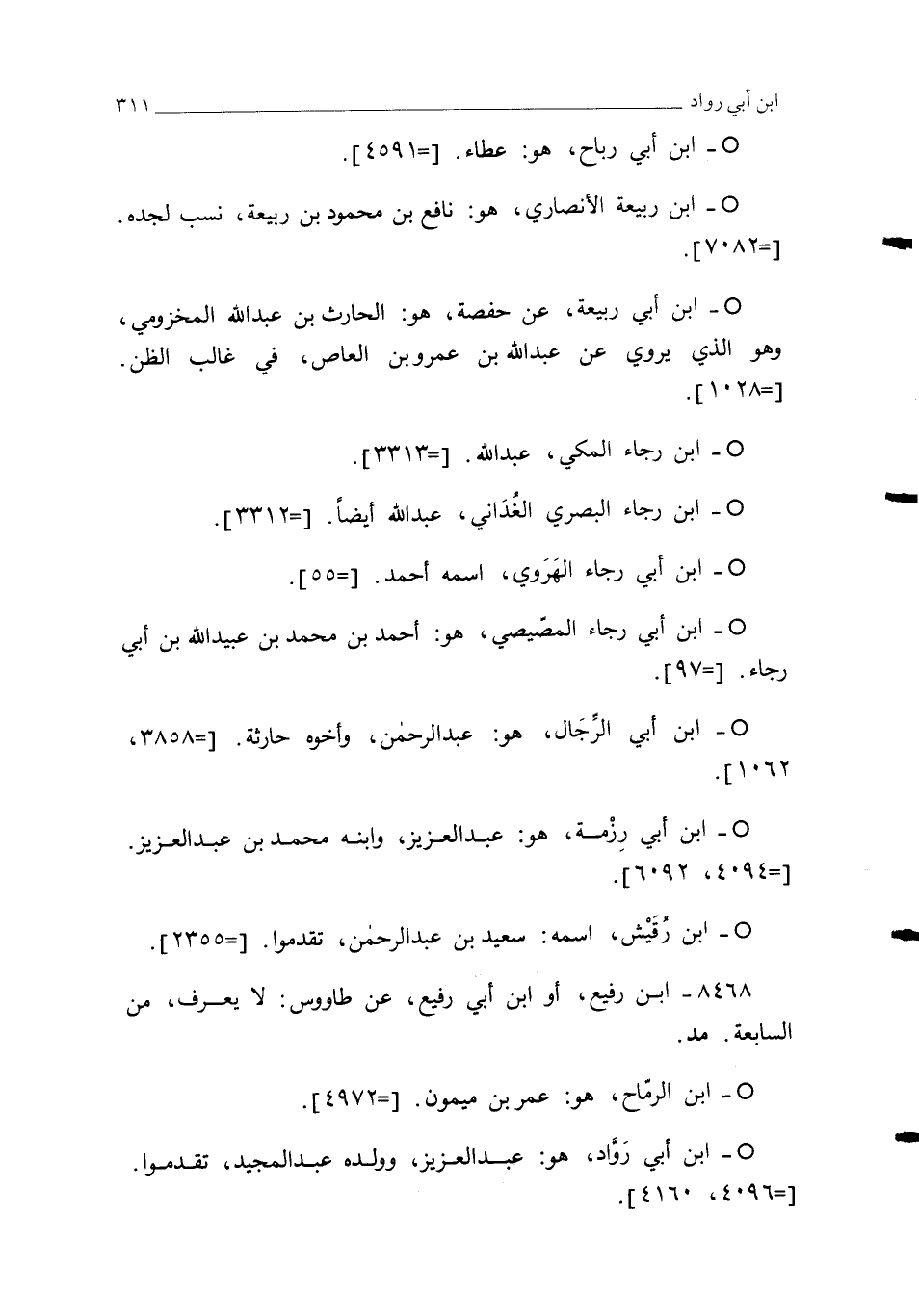 ° - ابن أبي رَوَّاد، هو: عبد العزيز، وولده عبد المجيد، تقدموا. [=4096، 4160].
