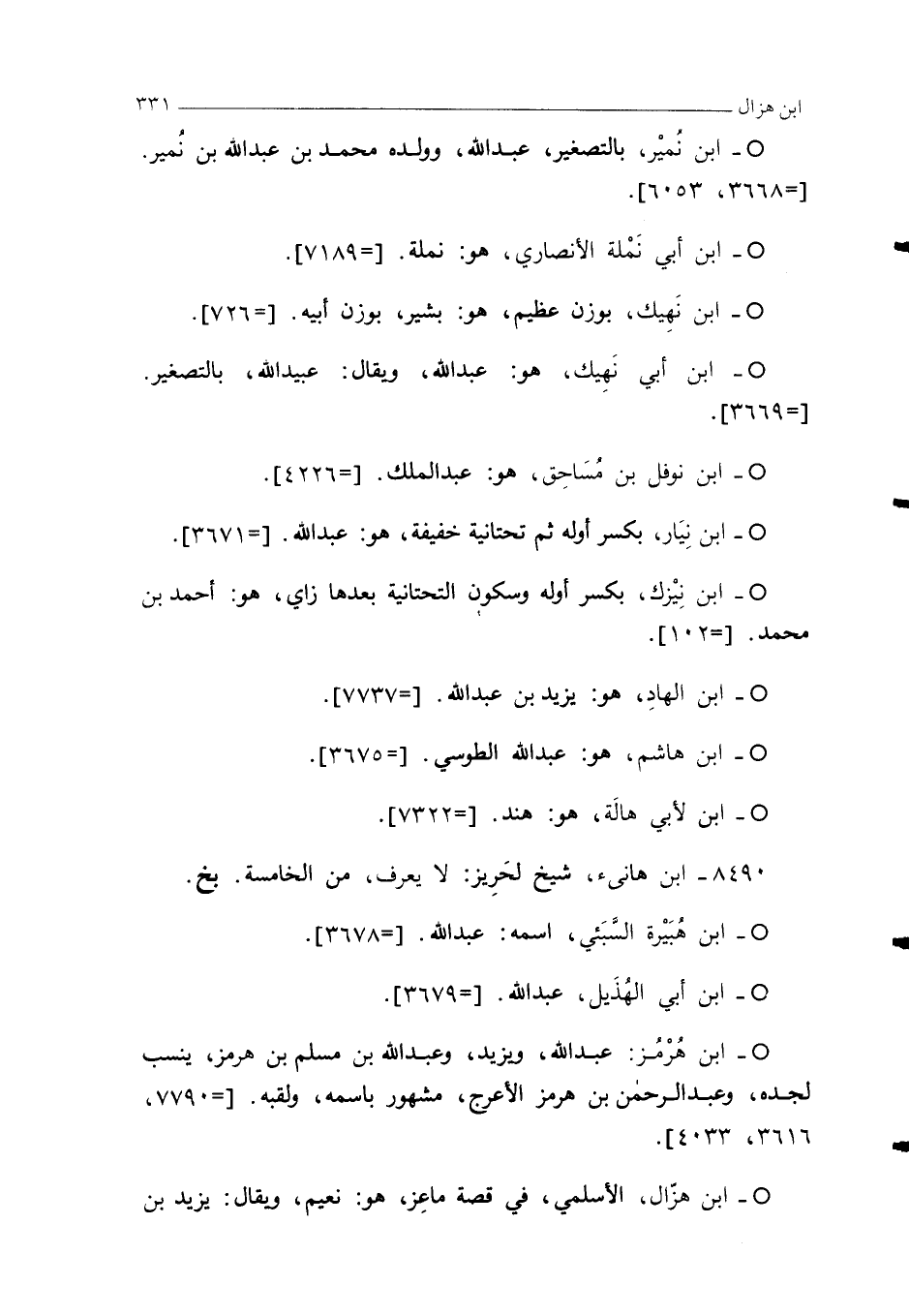 ° - ابن نَهِيك، بوزن عظيم، هو: بشير، بوزن أبيه. [=726].
