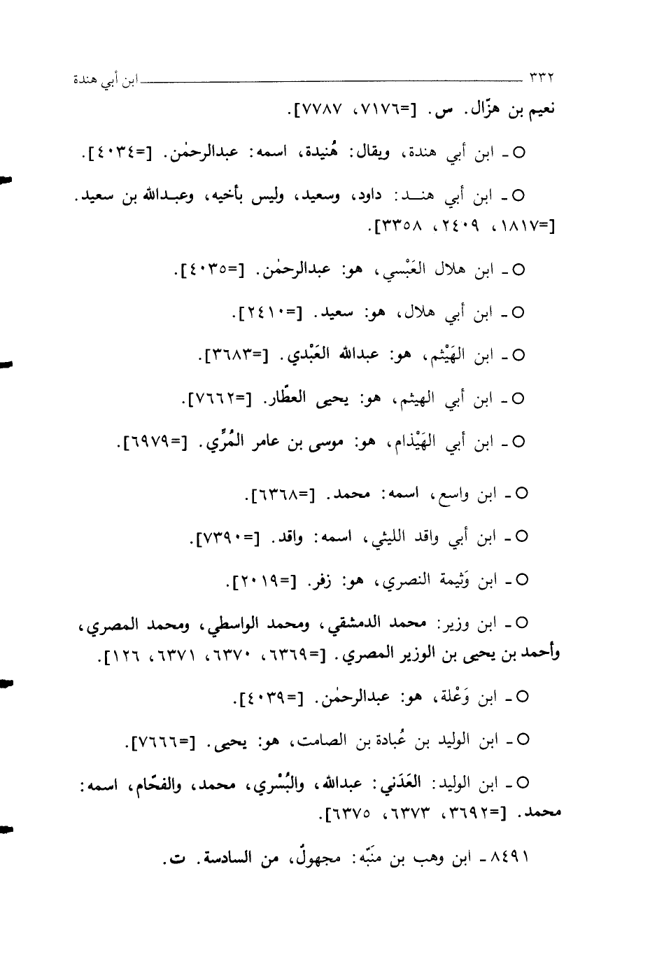 ° - ابن أبي هند: داود، وسعيد، وليس بأخيه، وعبد الله بن سعيد. [= 1817، 2409، 3358].