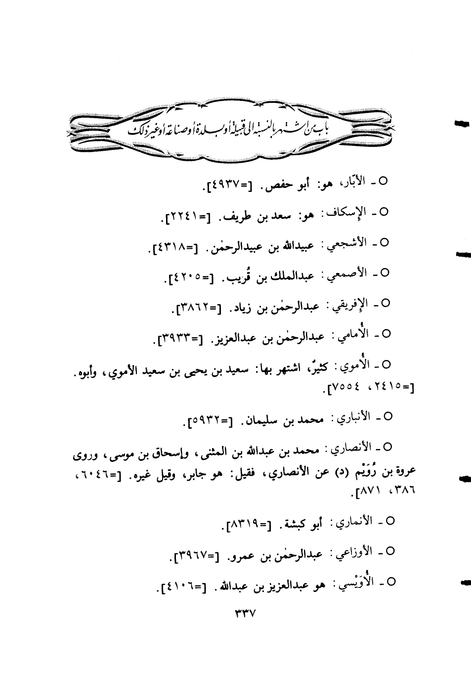 باب من اشتهر بالنسبة إلى قبيلة أو بلدة أو صناعة أو غير ذلك