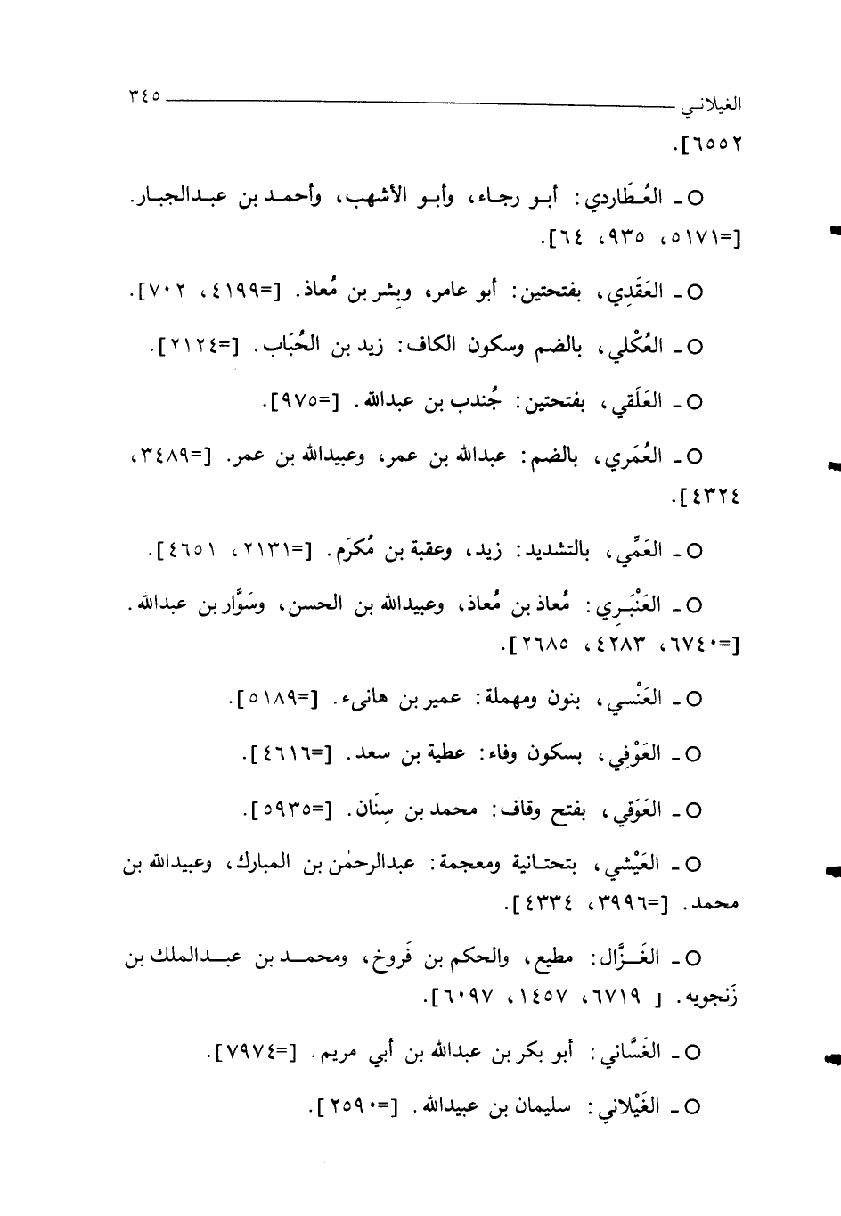 ° - العُطَاردي: أبو رجاء، وأبو الأشهب، وأحمد بن عبد الجبار. [=5171، 935، 64].