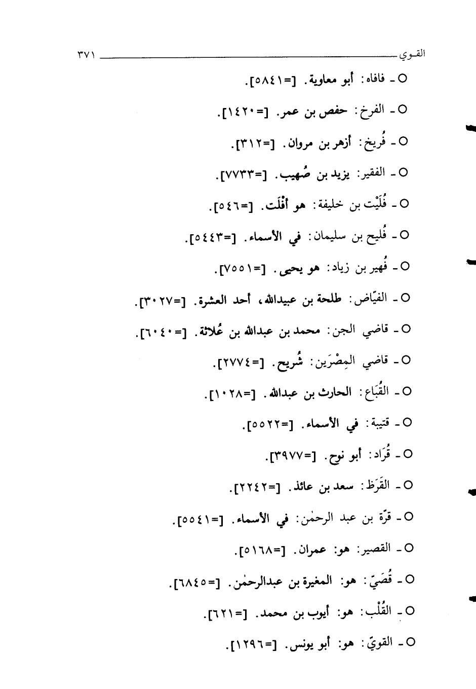 ° - فُليح بن سليمان: في الأسماء. [=5443].