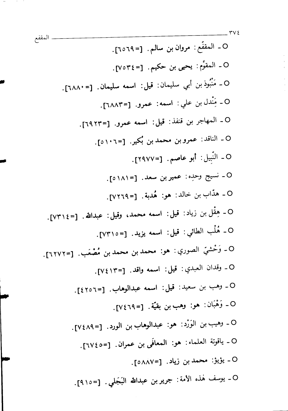 ° - ياقوتة العلماء: هو: المعافَى بن عمران. [= 6745].