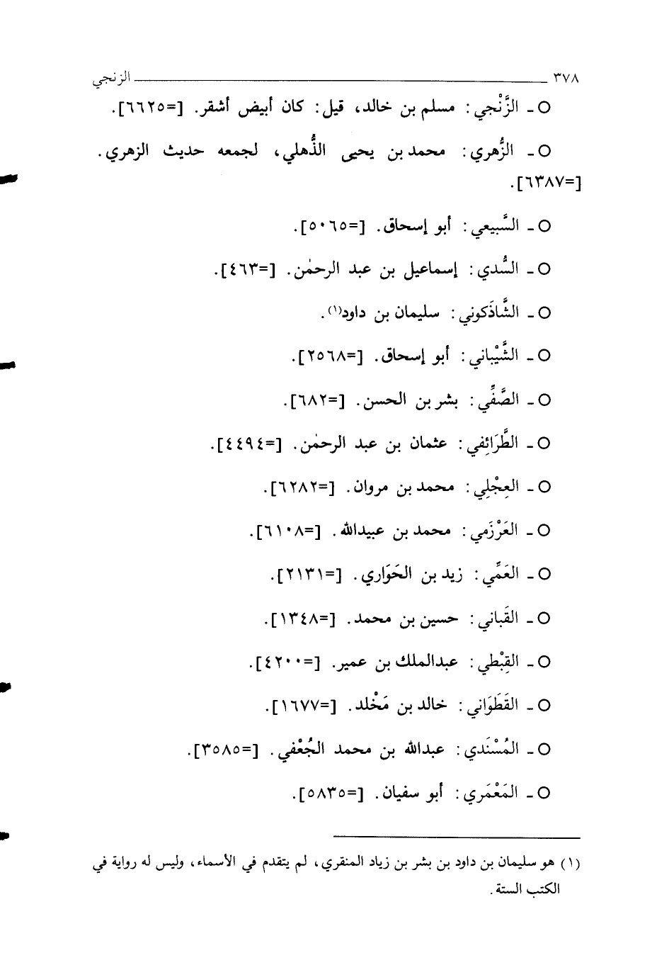 ° - الزَّنْجي: مسلم بن خالد، قيل: كان أبيض أشقر. [=6625].
