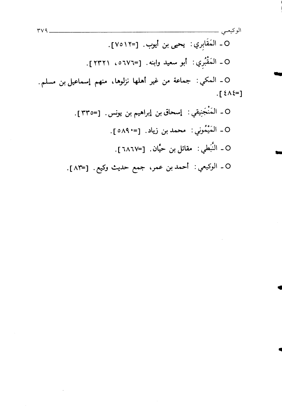 ° - الوكيعي: أحمد بن عمر، جمع حديث وكيع. [=83].