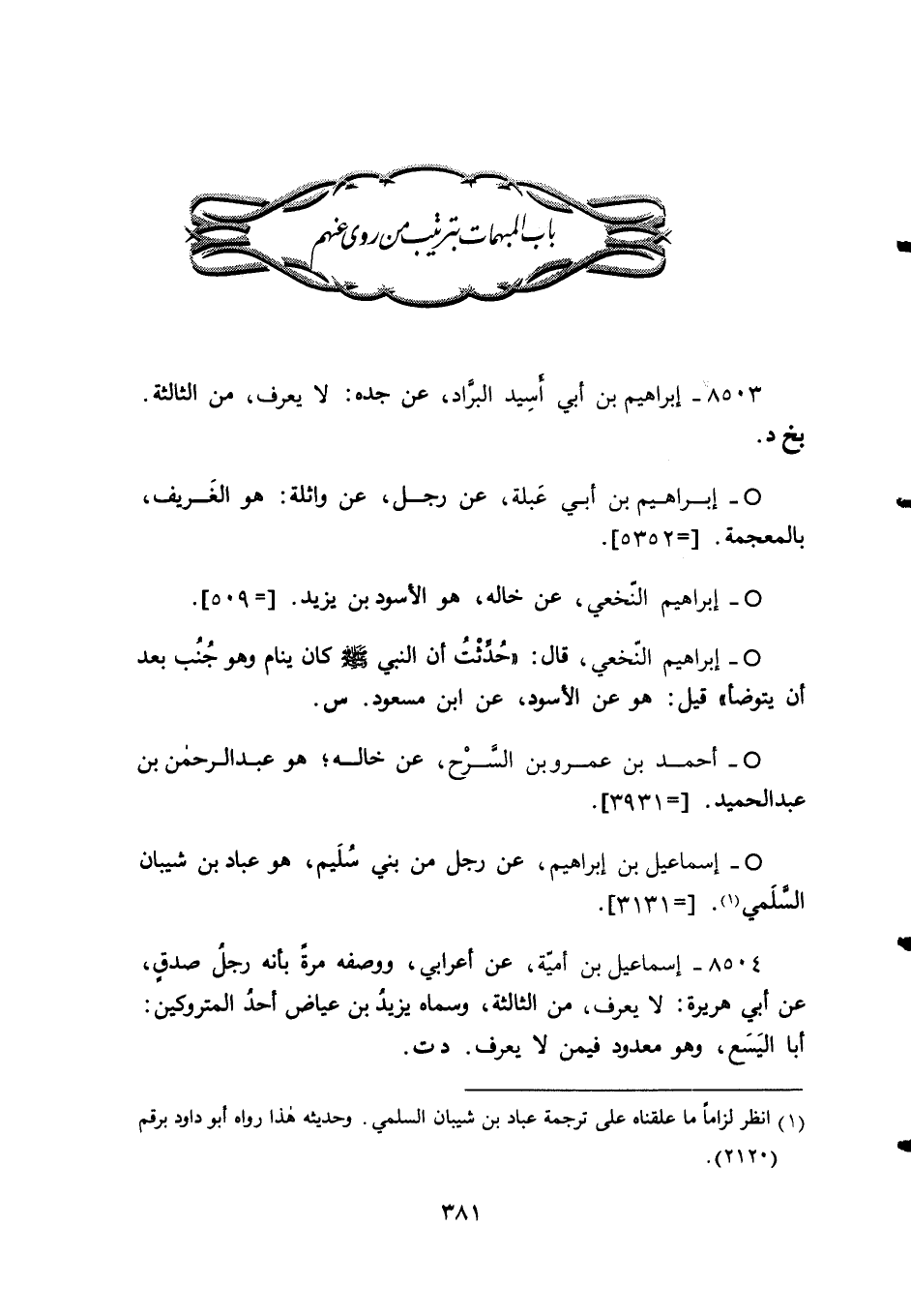 باب المبهمات بترتيب من روى عنهم