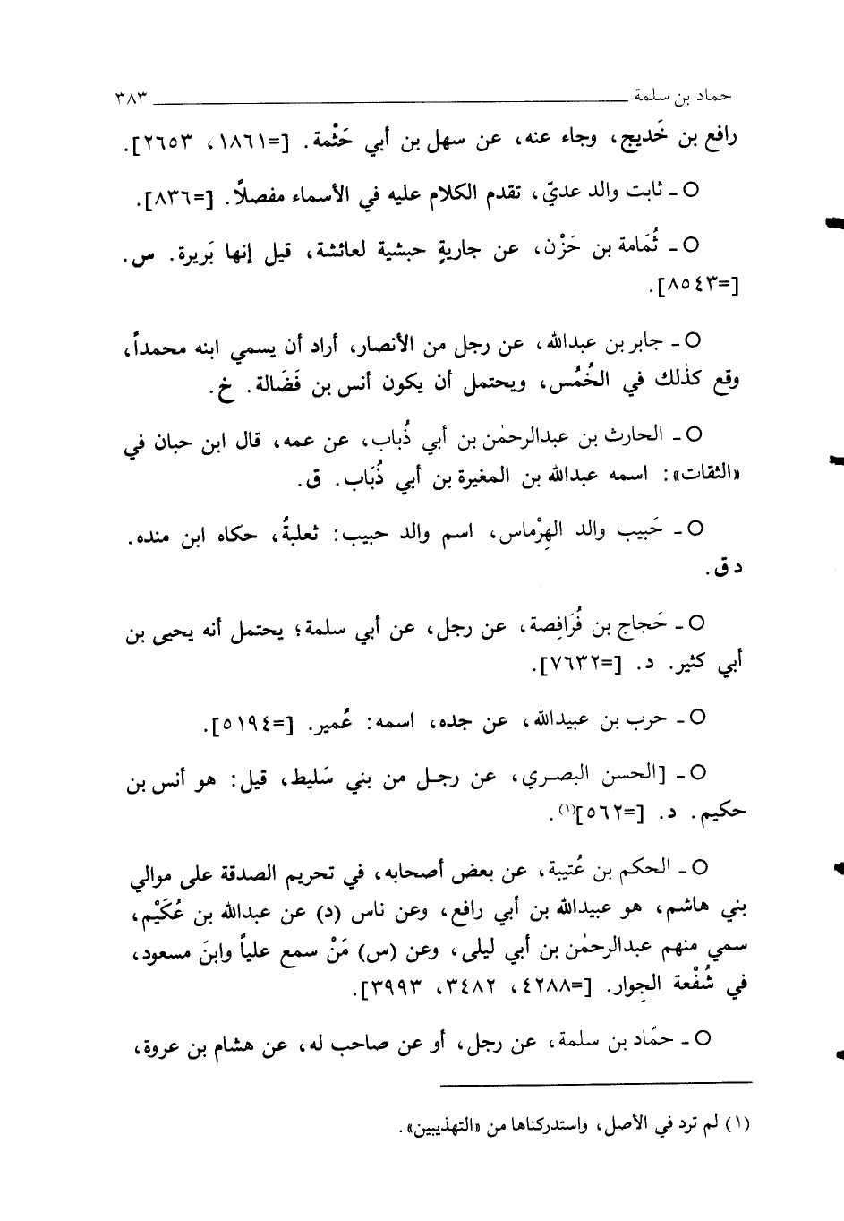 ° - حمّاد بن سلمة، عن رجل، أو عن صاحب له، عن هشام بن عروة،