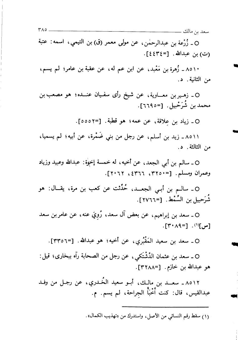 ° - سالم بن أبي الجعد، عن أخيه، له خمسة إخوة: عبد الله وعبيد وزياد وعمران ومسلم. [=3250، 4366، 2062].