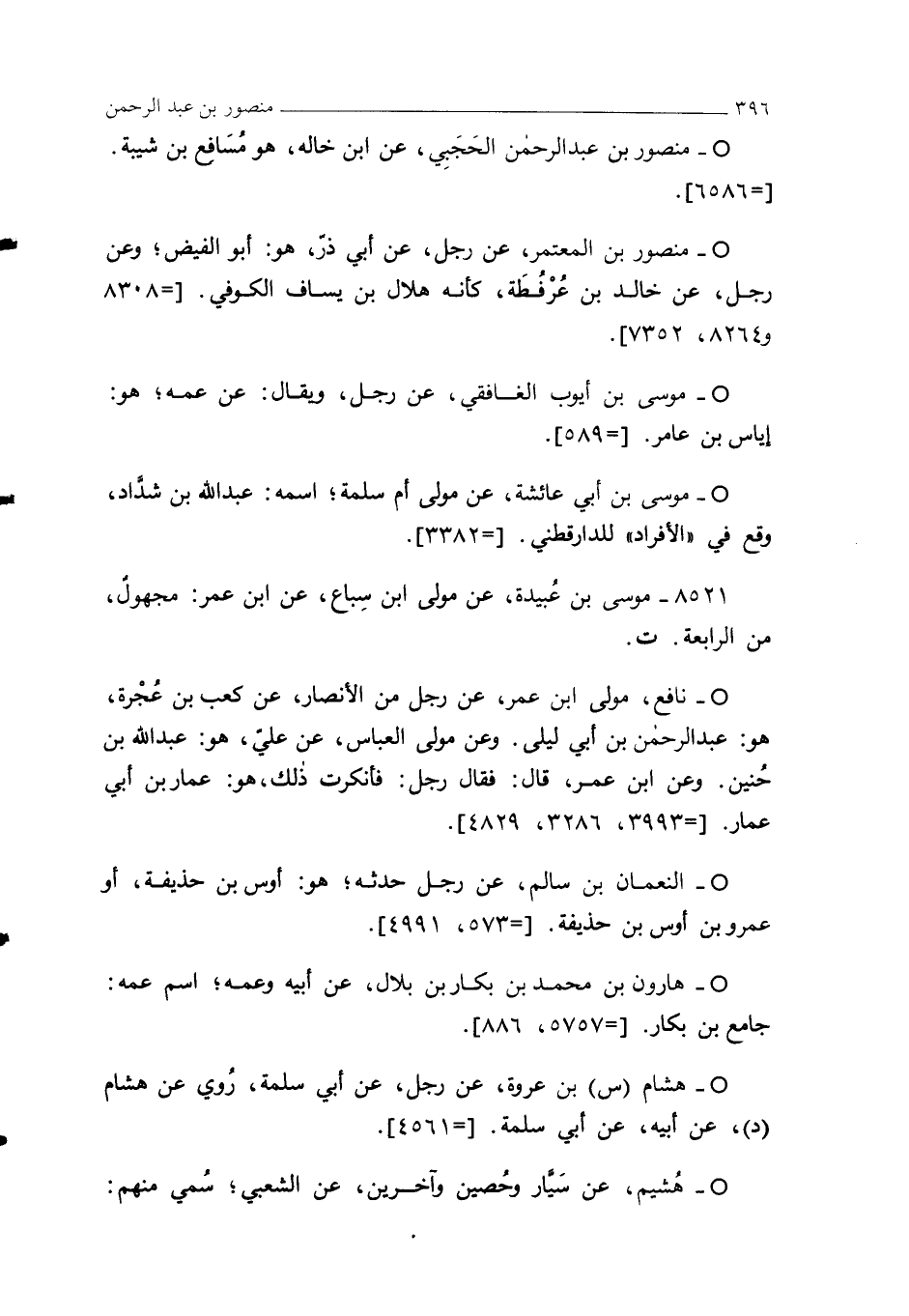° - منصور بن عبد الرحمن الحَجَبِي، عن ابن خاله، هو مُسَافِع بن شيبة. [= 6586].