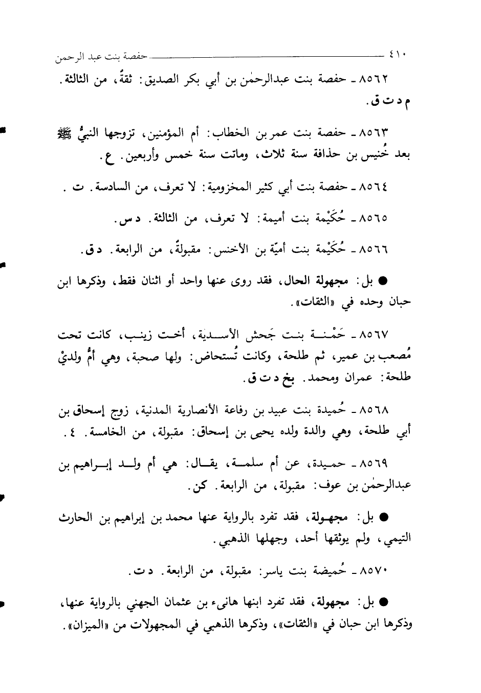 8570 - حُميضة بنت ياسر: مقبولة، من الرابعة. د ت.