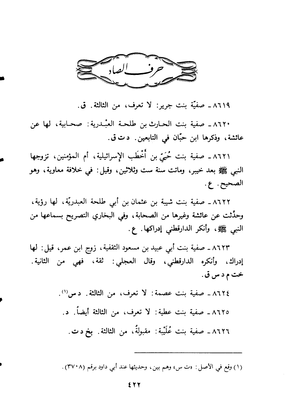 8619 - صفيّة بنت جربر: لا تعرف، من الثالثة. ق.