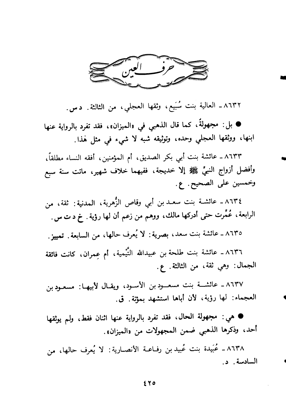 8632 - العالية بنت سُبَيع، وثقها العجلي، من الثالثة. د س.
