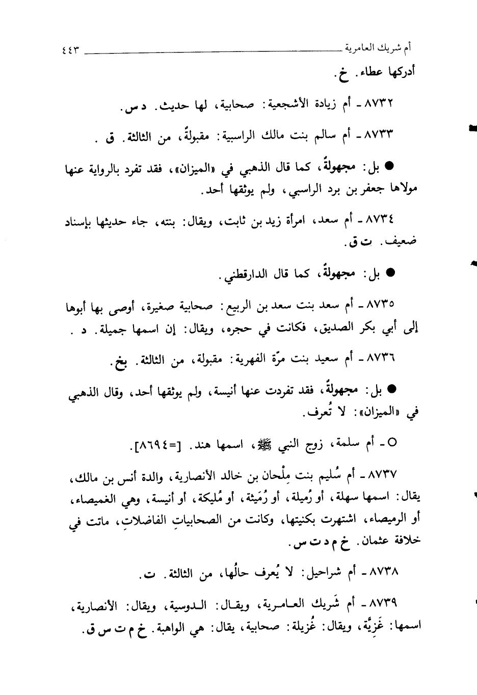 8736 - أم سعيد بنت مرّة الفهرية: مقبولةٌ، من الثالثة. بخ.