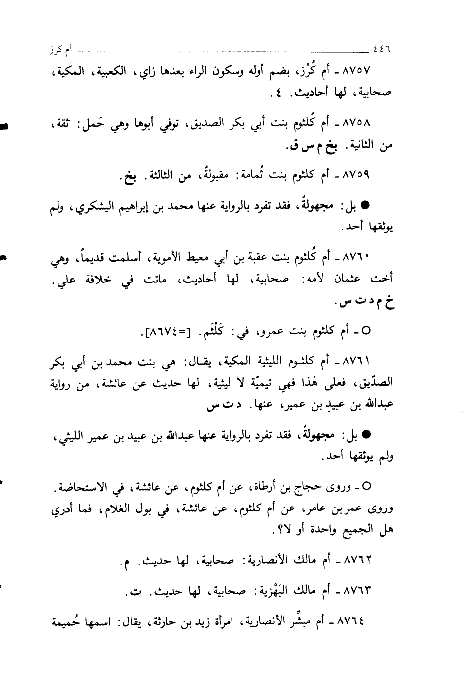 8759 - أم كلثوم بنت ثُمامة: مقبولةٌ، من الثالثة. بخ.