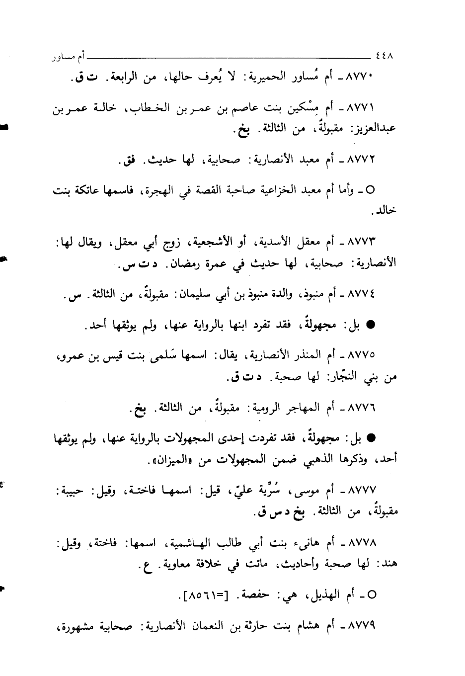 8770 - أم مُساور الحميرية: لا يُعرف حالها، من الرابعة. ت ق.
