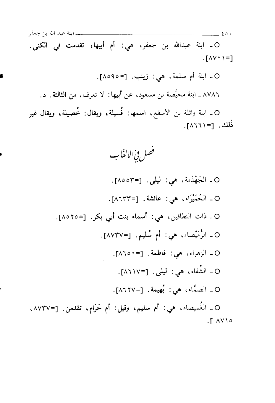° - ابنة عبد الله بن جعقر، هي: أم أبيها، تقدمت في الكنى. [=8701].