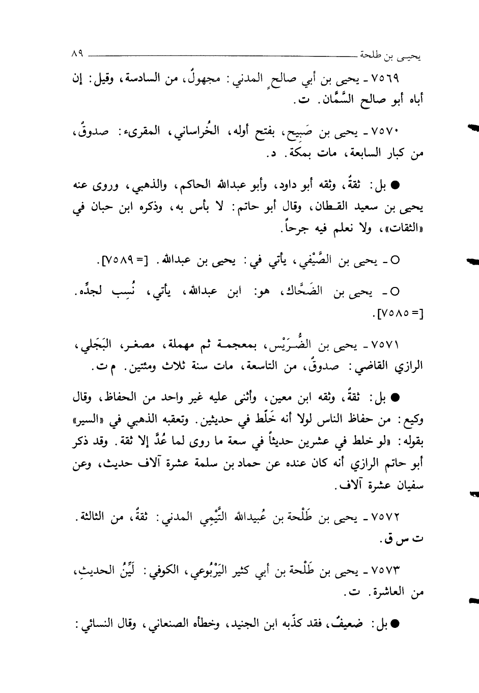 7572 - يحيى بن طَلْحة بن عُبيد الله التَّيْمِي المدني: ثقةٌ، من الثالثة. ت س ق.