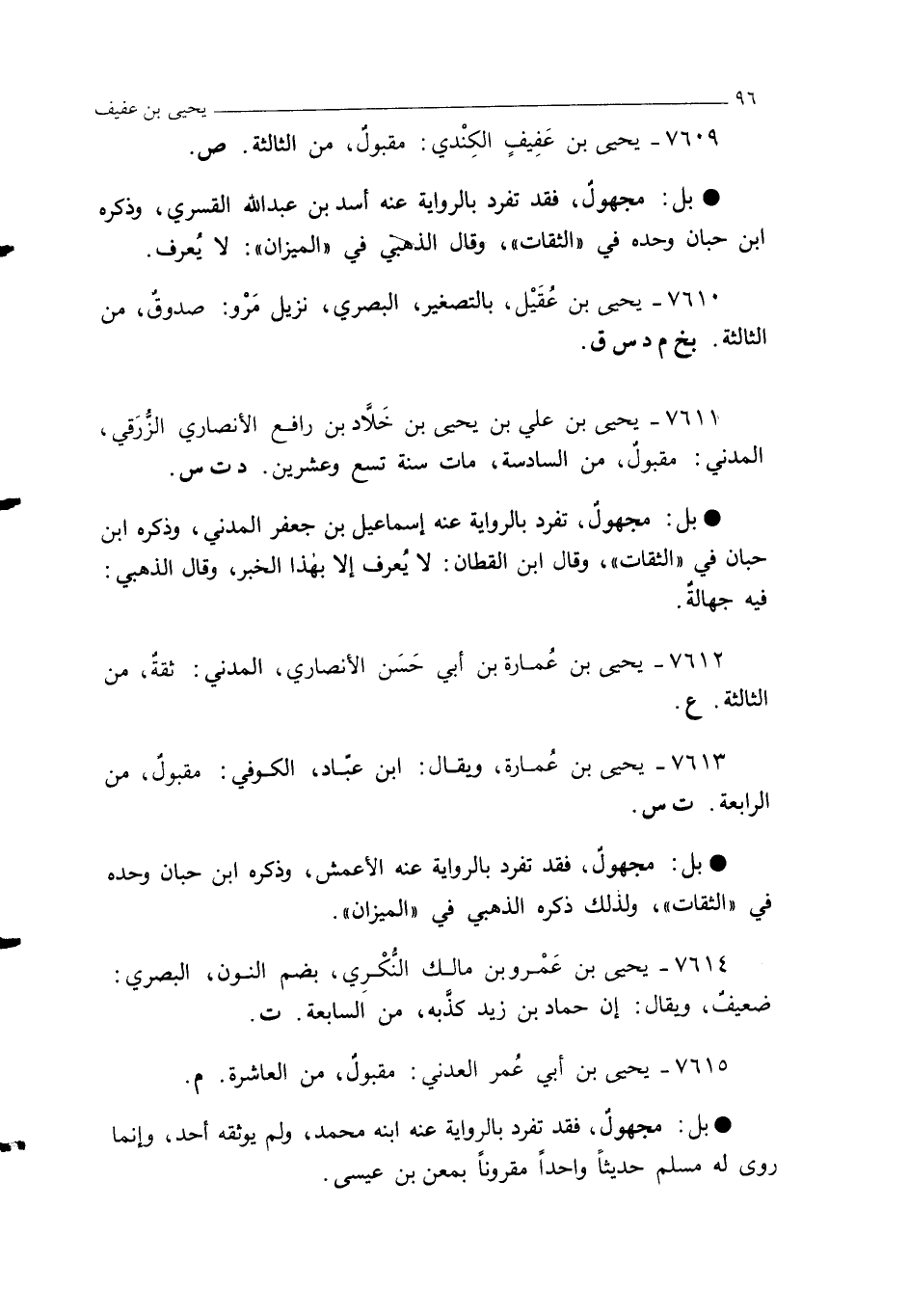 7609 - يحيى بن عَفِيفٍ الكِنْدي: مقبولٌ، من الثالثة. ص.