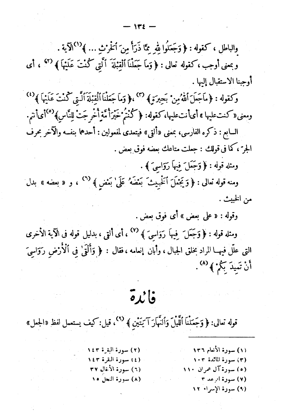 وَكَقَوْلِهِ: {مَا جَعَلَ الله من بحيرة} ، {وما جعلنا القبلة التي كنت عليها} وَمَعْنَى كُنْتُ عَلَيْهَا أَيْ أَنْتَ عَلَيْهَا كَقَوْلِهِ {كنتم خير أمة أخرجت للناس} أي أأنتم