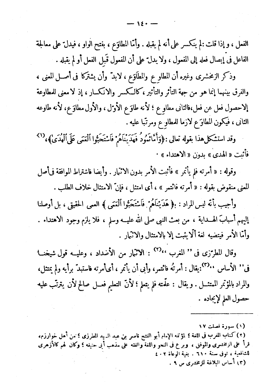 وَقَالَ الْمُطَرِّزِيُّ فِي الْمُغْرِبِ: الِائْتِمَارُ مِنَ الْأَضْدَادِ وَعَلَيْهِ قَوْلُ شَيْخِنَا فِي الْأَسَاسِ يُقَالُ أَمَرْتُهُ فَائْتَمَرَ وَأَبَى أَنْ يَأْتَمِرَ أَيْ أَمَرْتُهُ فَاسْتَبَدَّ بِرَأْيِهِ وَلَمْ يَمْتَثِلْ وَالْمُرَادُ بِالْمُؤْتَمِرِ الْمُمْتَثِلُ وَيُقَالُ عَلَّمْتُهُ فَلَمْ يَتَعَلَّمْ لِأَنَّ التَّعْلِيمَ فِعْلٌ صَالِحٌ لِأَنْ يَتَرَتَّبَ عَلَيْهِ حُصُولُ الْعِلْمِ لِإِيجَادِهِ