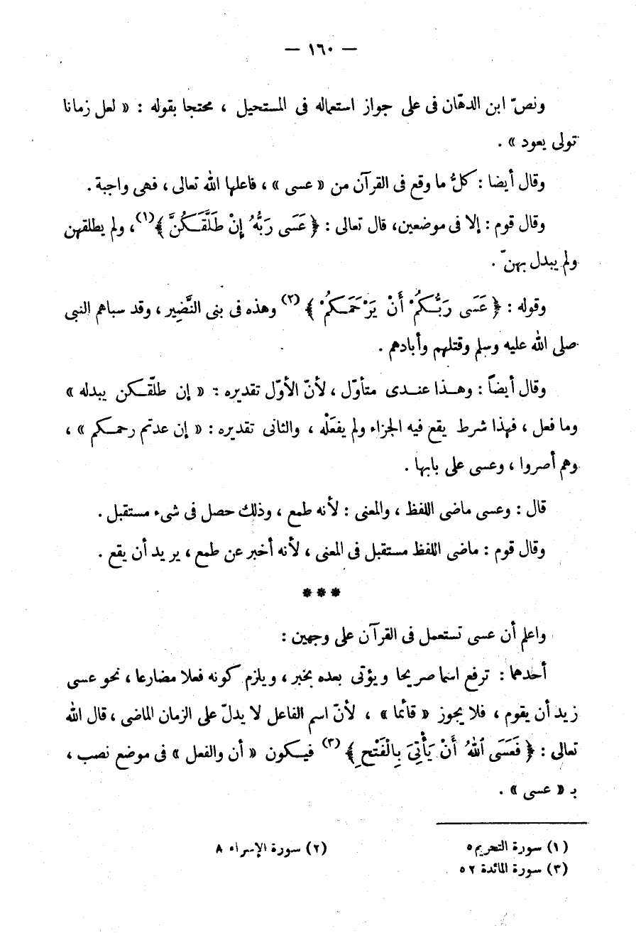 وَاعْلَمْ أَنَّ عَسَى تُسْتَعْمَلُ فِي الْقُرْآنِ عَلَى وَجْهَيْنِ: