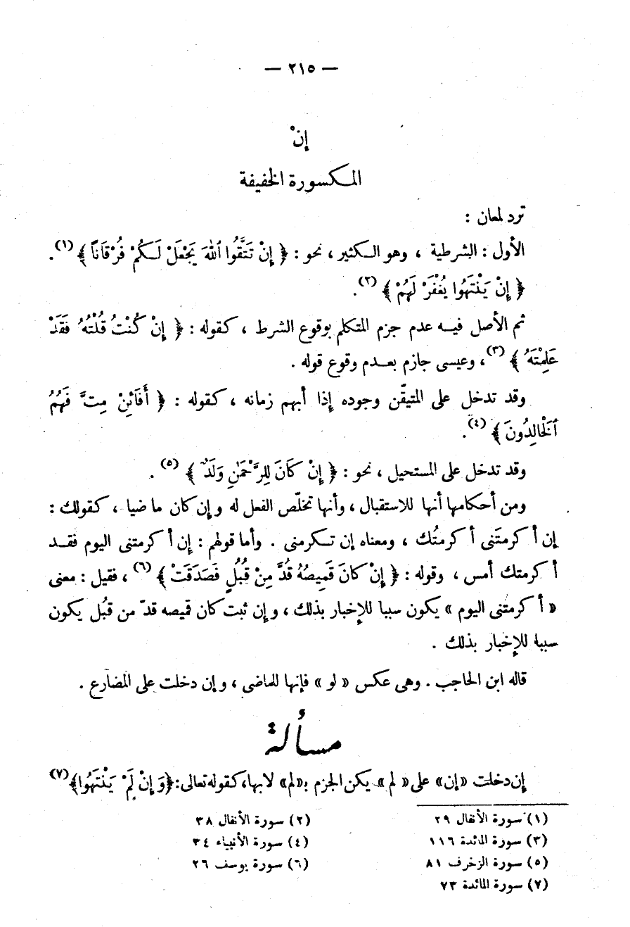 إِنْ دَخَلَتْ "إن" على لم يكن الجزم بـ"لم" لَا بِهَا كَقَوْلِهِ تَعَالَى: {وَإِنْ لَمْ يَنْتَهُوا}