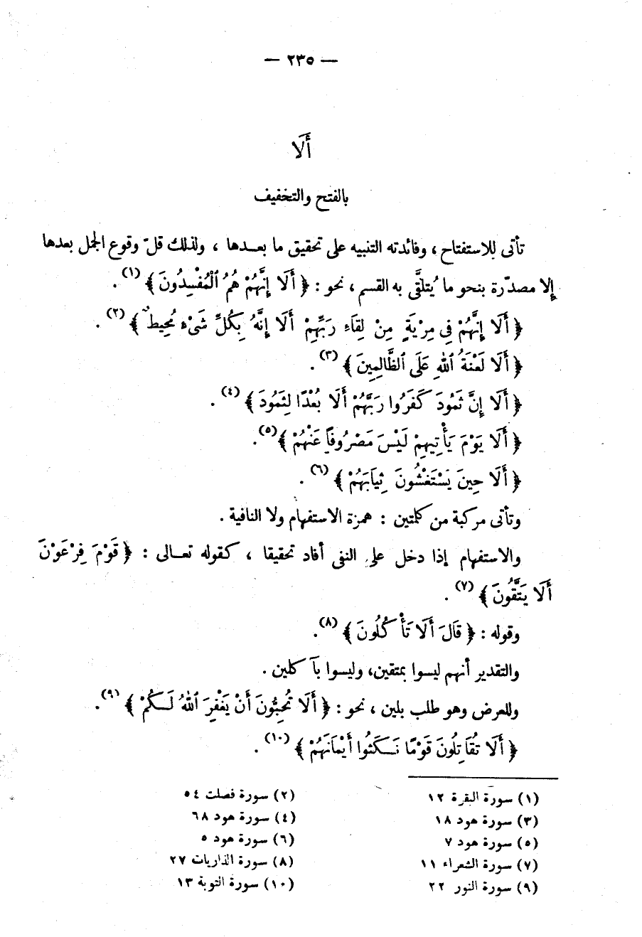 تَأْتِي لِلِاسْتِفْتَاحِ وَفَائِدَتُهُ التَّنْبِيهُ عَلَى تَحْقِيقِ مَا بَعْدَهَا وَلِذَلِكَ قَلَّ وُقُوعُ الْجُمَلِ بَعْدَهَا إِلَّا مُصَدَّرَةً بِنَحْوِ مَا يُتَلَقَّى بِهِ الْقَسَمُ نَحْوُ: {أَلَا إِنَّهُمْ هُمُ الْمُفْسِدُونَ}