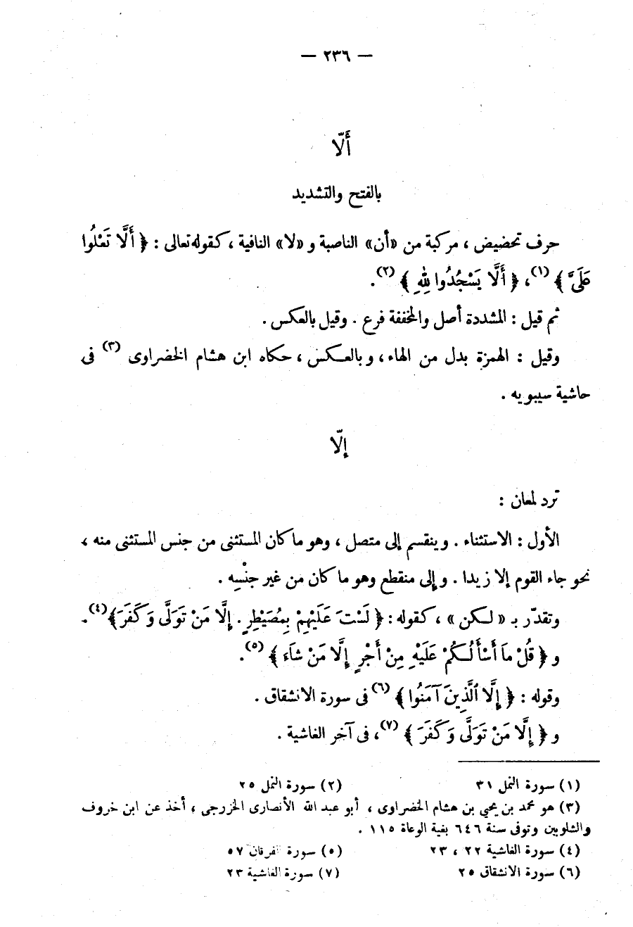 أَلَّا بِالْفَتْحِ وَالتَّشْدِيدِ