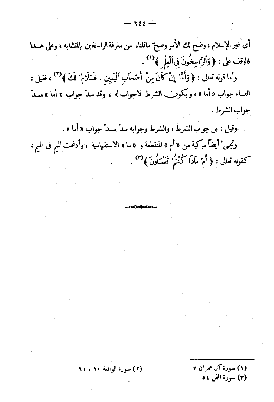 أَيْ غَيْرُ الْإِسْلَامِ وَضَحَ لَكَ الْأَمْرُ وَصَحَّ مَا قُلْنَاهُ مِنْ مَعْرِفَةِ الرَّاسِخِينَ بِالْمُتَشَابِهِ وَعَلَى هذا فالوقف على