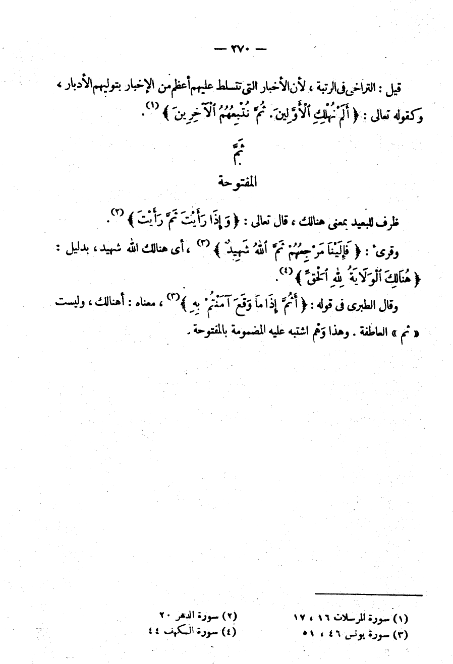 قِيلَ التَّرَاخِي فِي الرُّتْبَةِ لِأَنَّ الْأَخْبَارَ الَّتِي تَتَسَلَّطُ عَلَيْهِمْ أَعْظَمُ مِنَ الْإِخْبَارِ بِتَوَلِّيهِمُ الْأَدْبَارَ وكقوله تَعَالَى: {أَلَمْ نُهْلِكِ الْأَوَّلِينَ ثُمَّ نُتْبِعُهُمُ الْآخِرِينَ}