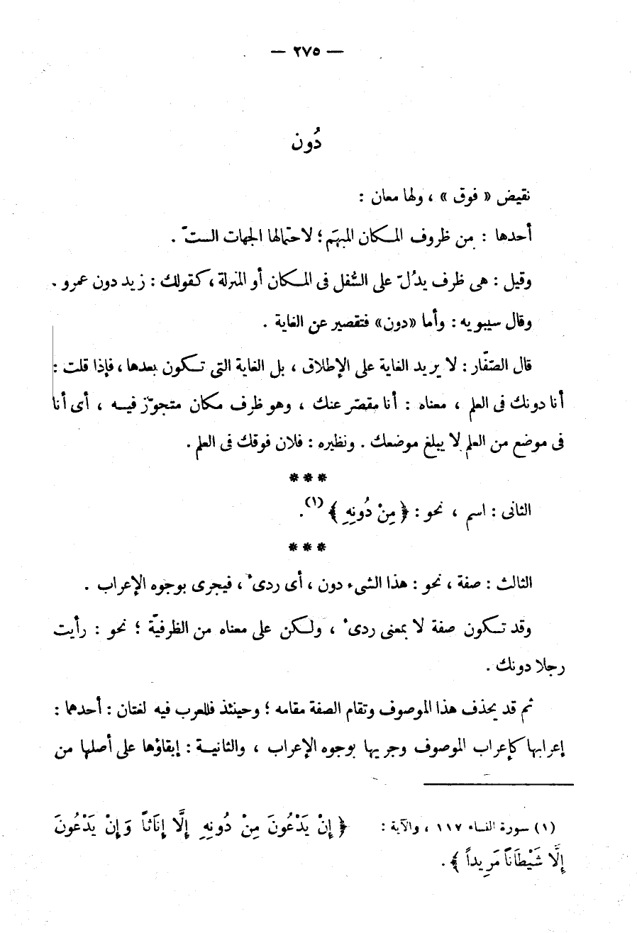 وَقَالَ سِيبَوَيْهِ: وَأَمَّا دُونَ فَتَقْصِيرٌ عَنِ الْغَايَةِ