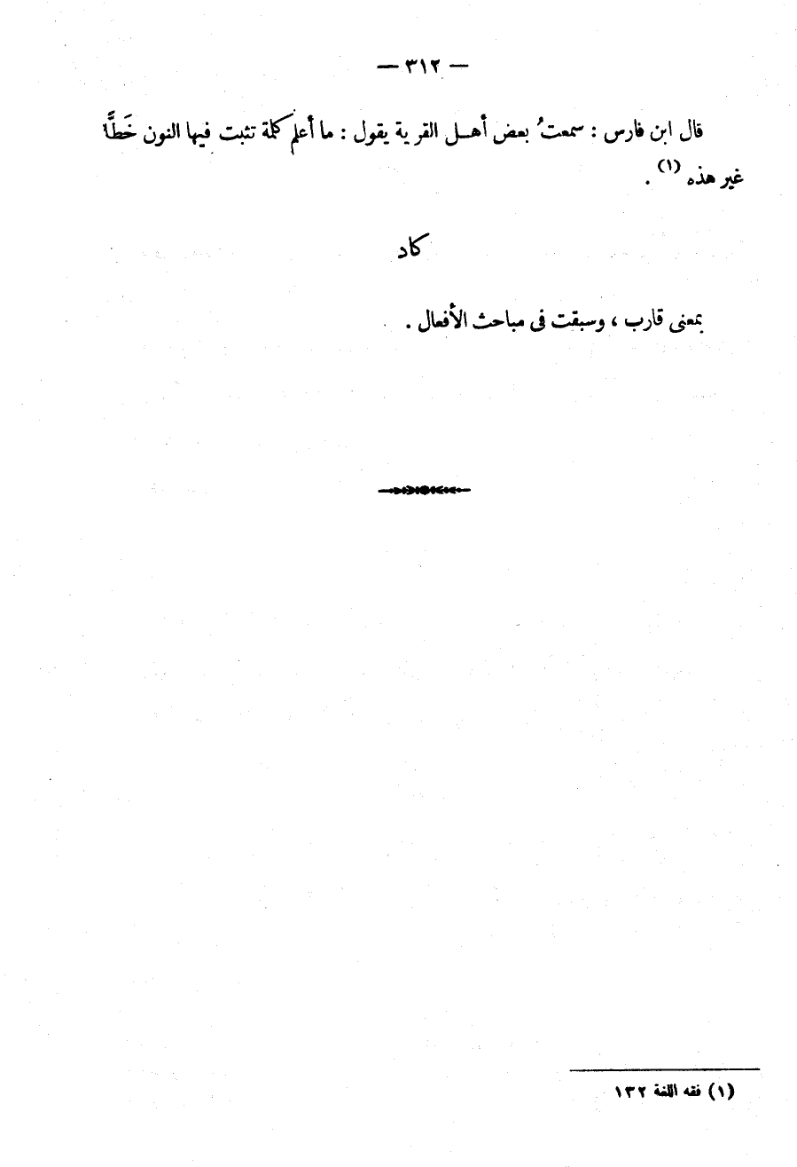 قال ابن فارس: سمعت بعض أهل القرية يَقُولُ مَا أَعْلَمُ كَلِمَةً تَثْبُتُ فِيهَا النُّونُ خطا غيره هذه