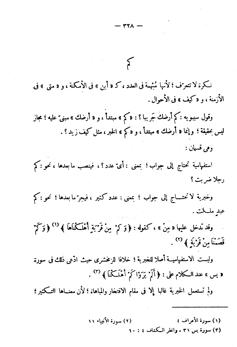 نَكِرَةٌ لَا تَتَعَرَّفُ لِأَنَّهَا مُبْهَمَةٌ فِي العدد كـ "أين" فِي الْأَمْكِنَةِ وَمَتَى فِي الْأَزْمِنَةِ وَكَيْفَ فِي الْأَحْوَالِ.