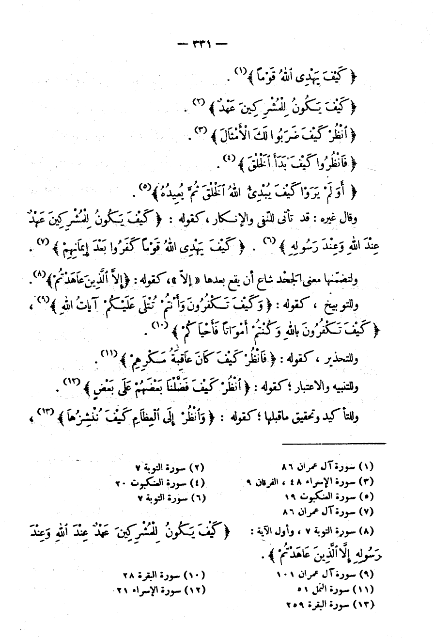 وَقَالَ: غَيْرُهُ قَدْ تَأْتِي لِلنَّفْيِ وَالْإِنْكَارِ كَقَوْلِهِ: {كَيْفَ يَكُونُ لِلْمُشْرِكِينَ عَهْدٌ عِنْدَ اللَّهِ وَعِنْدَ رسوله}