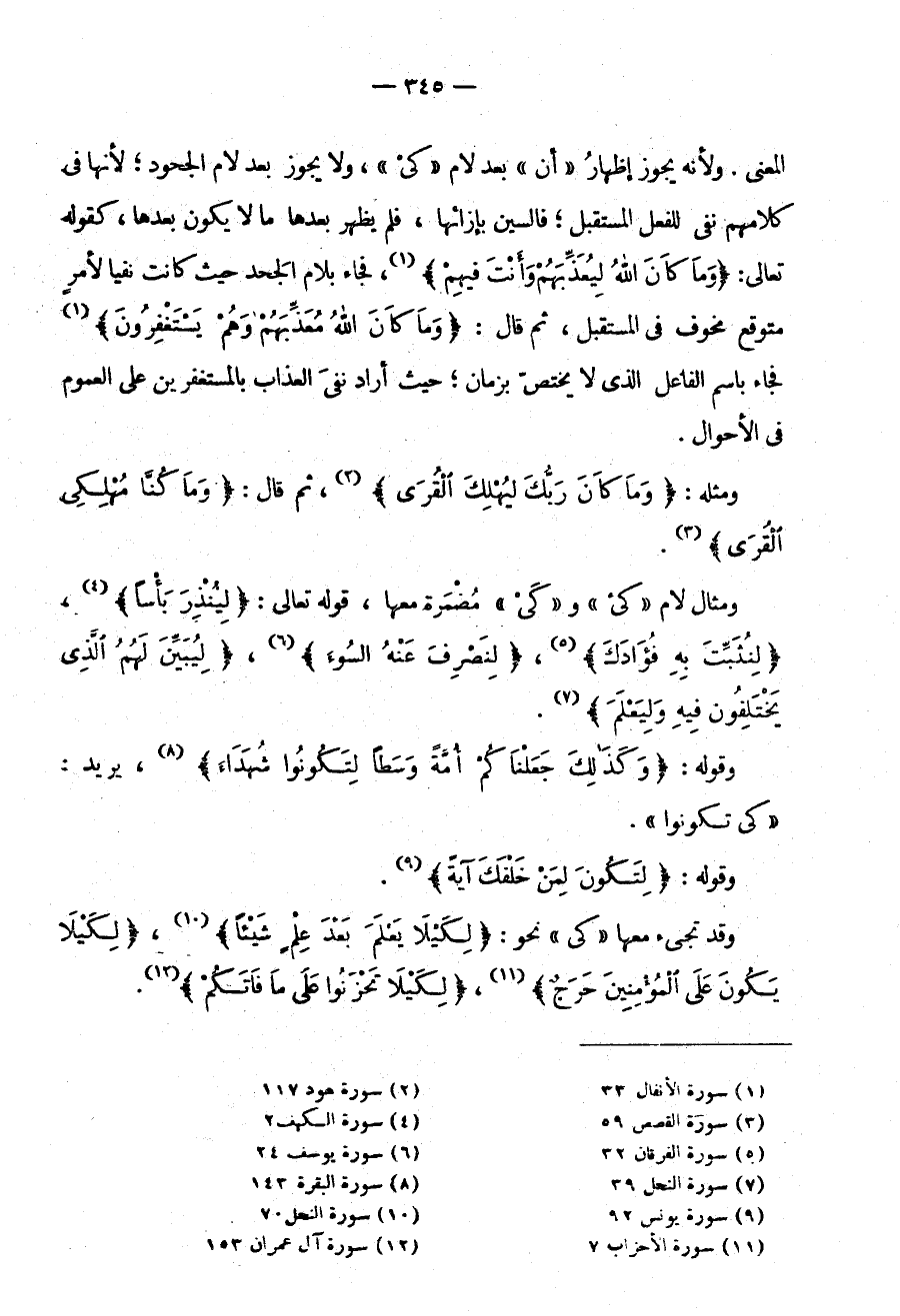 ومثال لام كي وكي مضمرة معها قوله تعالى: {لينذر بأسا} {لنثبت به فؤادك} {لنصرف عنه السوء} {ليبين لهم الذي يختلفون فيه وليعلم}
