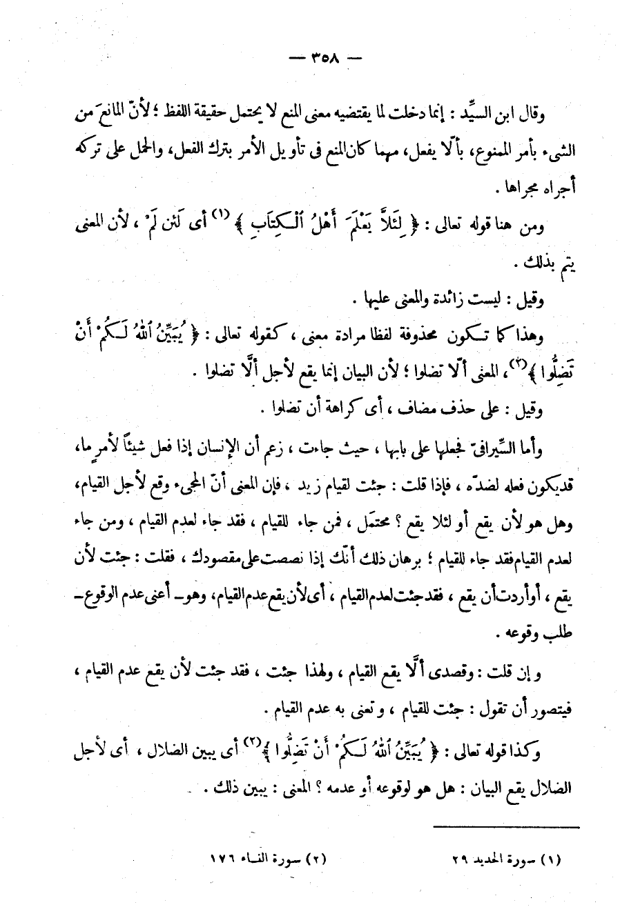 وَمِنْ هُنَا قَوْلُهُ تَعَالَى: {لِئَلَّا يَعْلَمَ أَهْلُ الْكِتَابِ} . أي لئن لم لِأَنَّ الْمَعْنَى يَتِمُّ بِذَلِكَ.