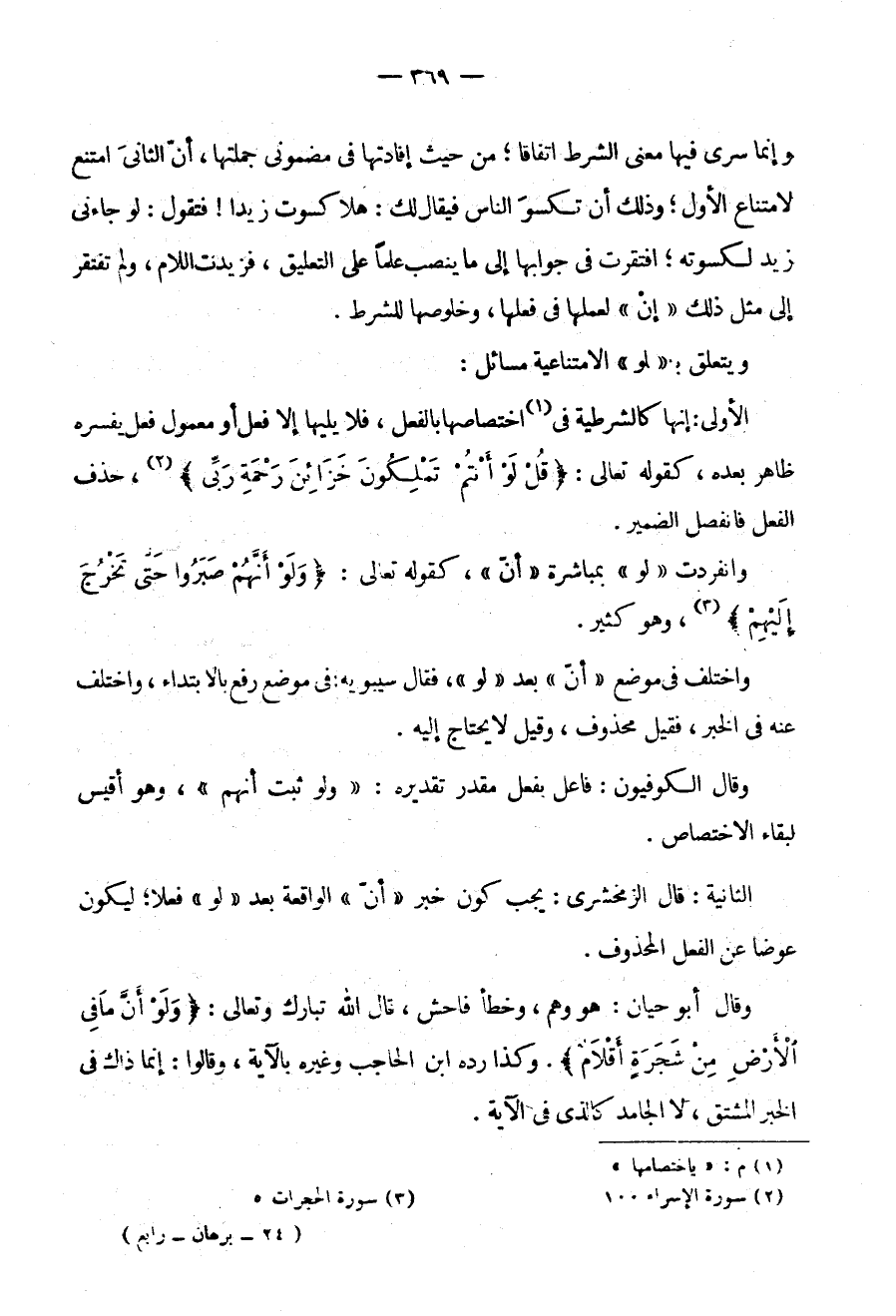 وَيَتَعَلَّقُ بِـ "لَوِ" الِامْتِنَاعِيَّةِ مَسَائِلُ: