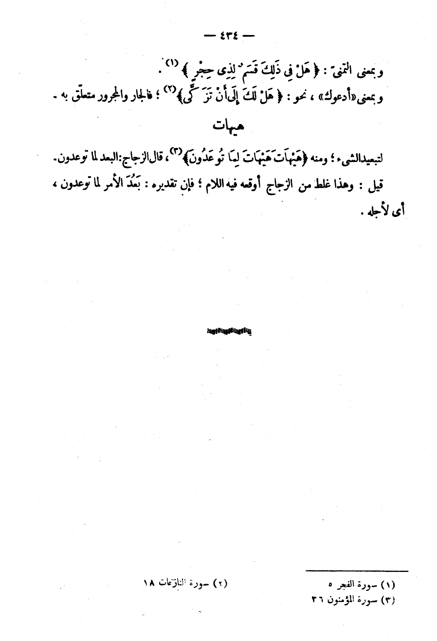 لِتَبْعِيدِ الشَّيْءِ ومنه: {هيهات هيهات لما توعدون} قال الزجاج البعد لما توعدون